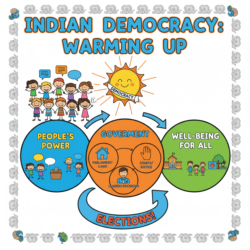 India embraced democracy after gaining independence from British rule. In a democracy, the power lies with the people. We get to choose our leaders through elections. These elected representatives then govern the country according to the laws and rules laid out in our Constitution. If we're not happy with how things are going, we have the power to vote for someone else in the next election. It's a government 'of the people, by the people, and for the people.'